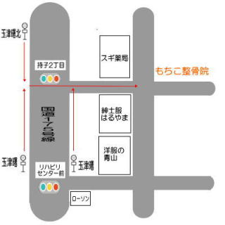 「紳士服のはるやま」さんと「スギ薬局」さんの間の歩道を進めば当院があります。